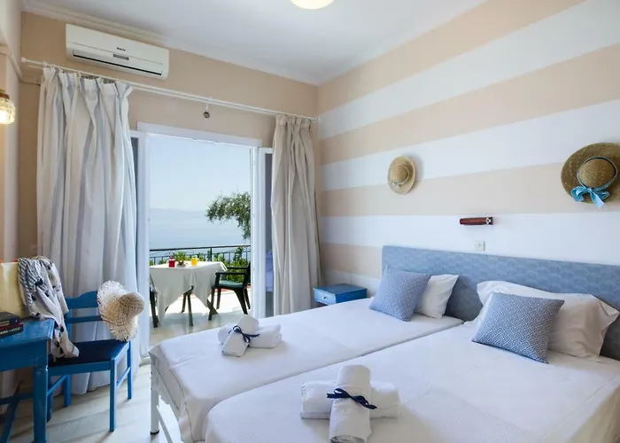 Situado a solo 9 km de Corfu Town y a 15 km del Aeropuerto Internacional de Corfú, el transporte es accesible, facilitando explorar la isla. Además, una parada de autobús cercana te conecta con los principales puntos de interés.